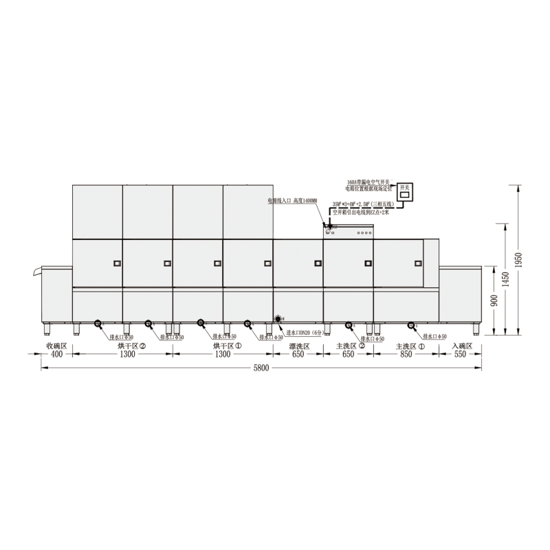 4、履带出口末端设自动停机保护装置,防餐具未及时卸载造成破损,省时省心。